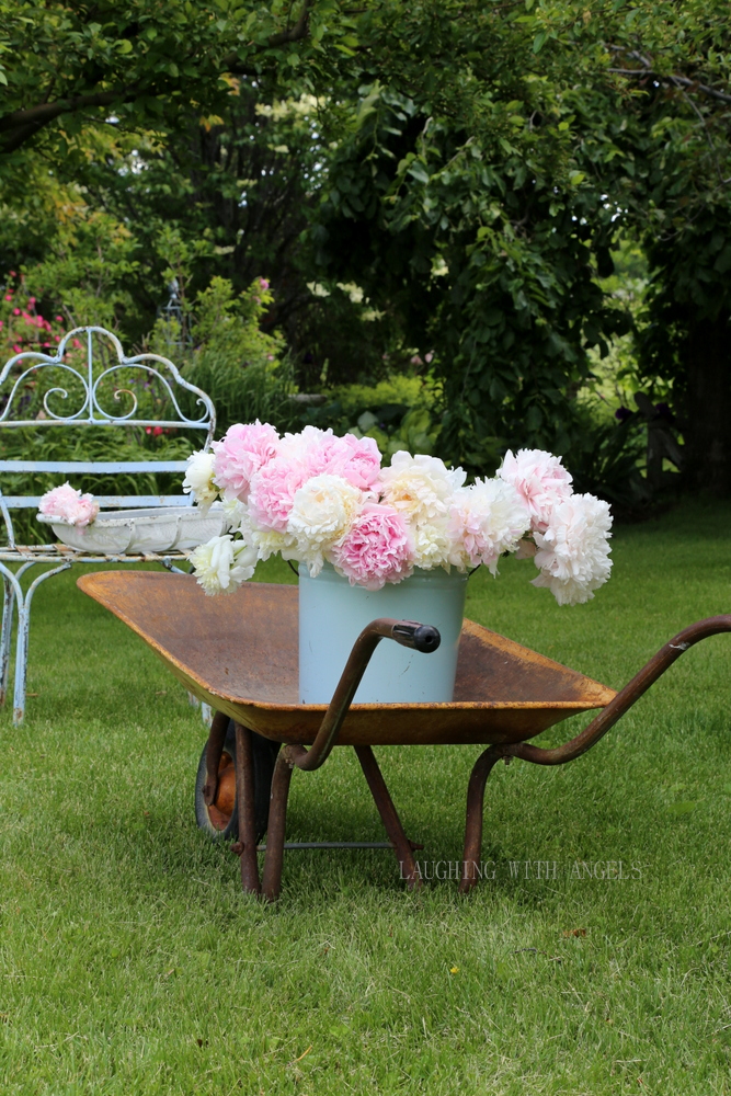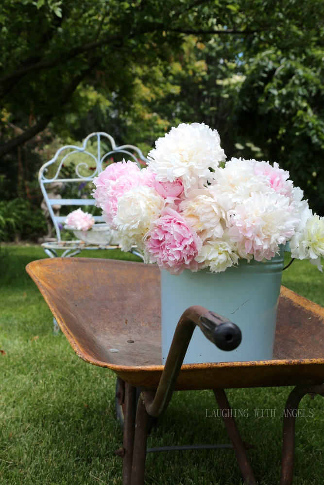 Nothing beats a rusty wheelbarrow with a bucket of peonies